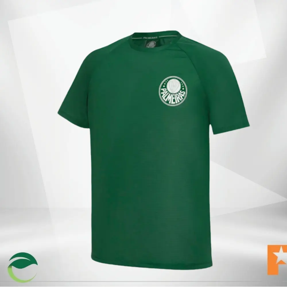 camiseta em tecido trabalhado 100% poliester com tecnologia Dry Manga raglan Escudo Palmeiras em transfer termoaplicado Etiqueta S.E.Palmeiras em transfer termoaplicado